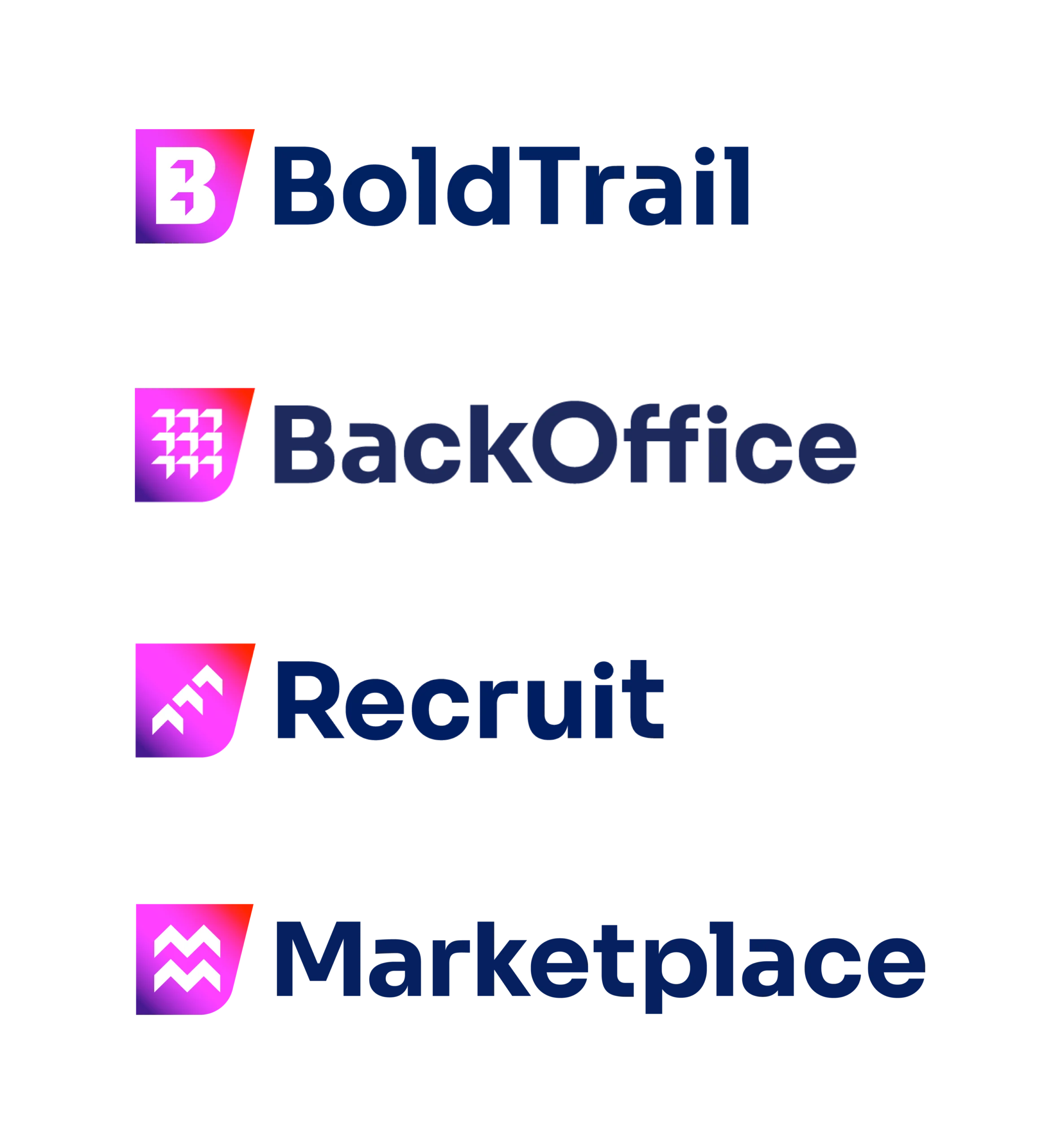 With the BoldTrail logo as our foundation, our internal team developed the full visual brand architecture: a color system, typographic framework, and product iconography suite that gave BoldTrail a cohesive identity flexible enough to accommodate the myriad of products, services, add-ons, and apps that comprise the BoldTrail portfolio.